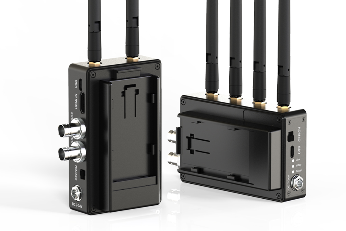 S-6160无线图传发射端和接收端功耗均低于8W,发射端和接收端均标配NP-F DV电池扣板,支持7-34V带锁DC输入。