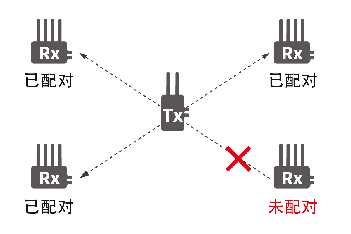 S-6160无线图传支持1个发射端对4个接收端的稳定广播模式传输, 采用私有无线传输协议以及AES128传输内容加密的双保险,未经配对的接收端绝无可能接收画面,确保片场影视素材的保密性和安全性。