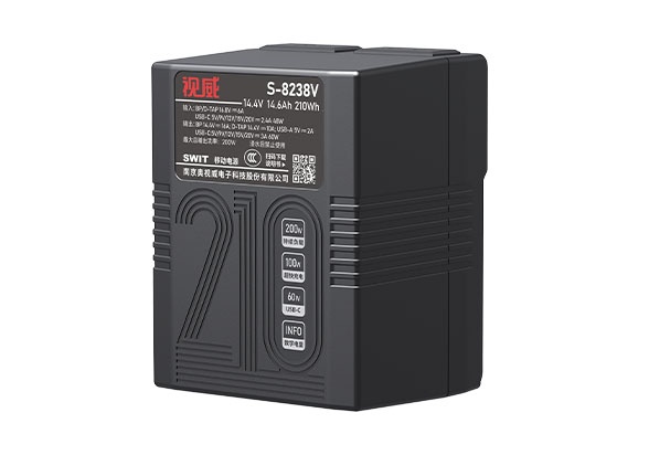 S-8238V尺寸仅有105x79.6x73.8mm,相比传统同容量级别的电池,体积缩小了40%,适用于影视外拍轻巧便携且长续航的需求。